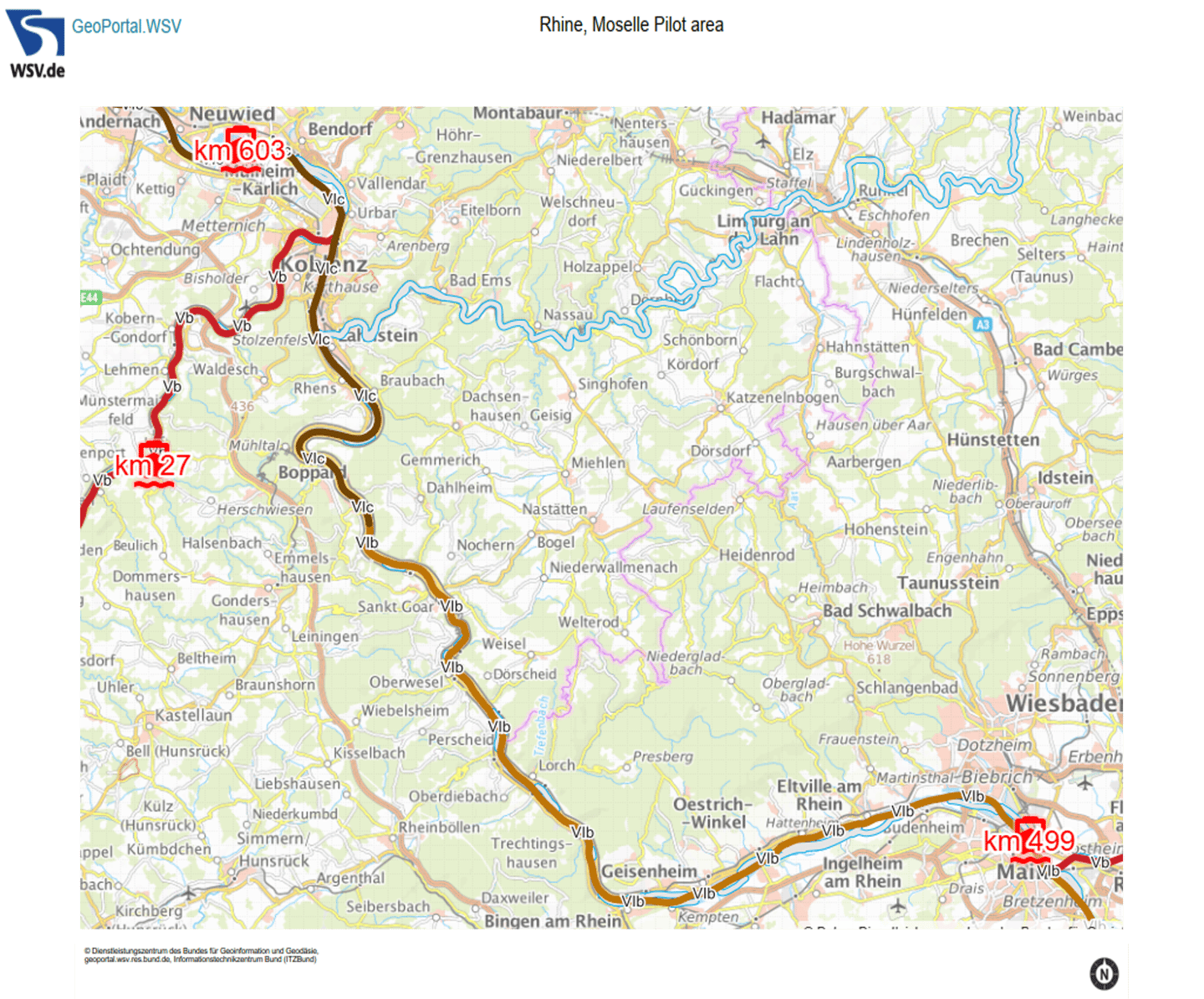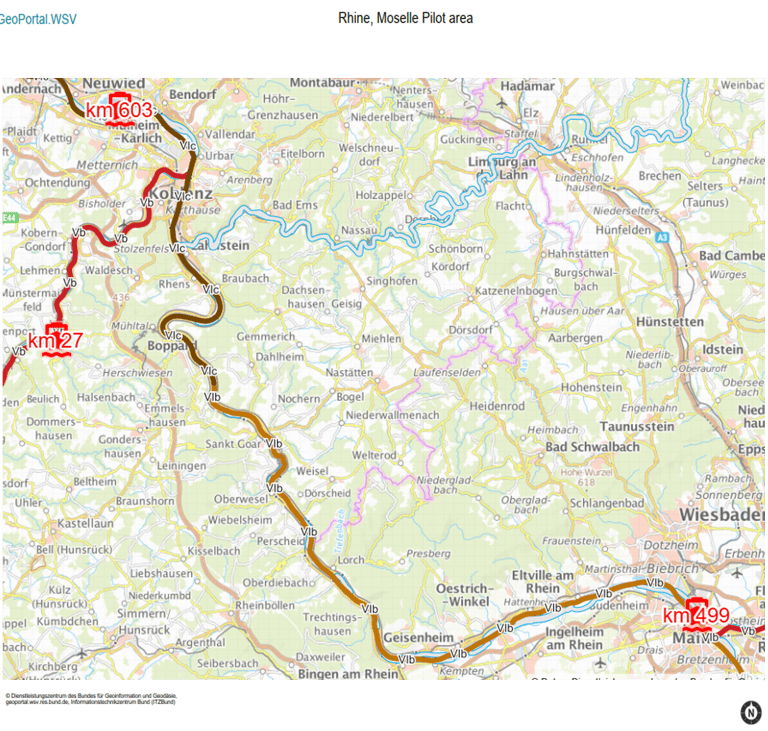 The chosen area is in Germany, around Koblenz, at the confluence of Moselle and Rhine rivers. The pilot includes both waterways.