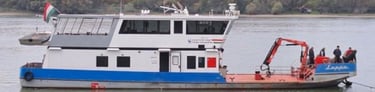 The identified vessel is The ‘MS Luppa’ Marking Vessel. It is the waterway authority’s ship to maintain the Budapest stretch and nearby areas on the Danube.